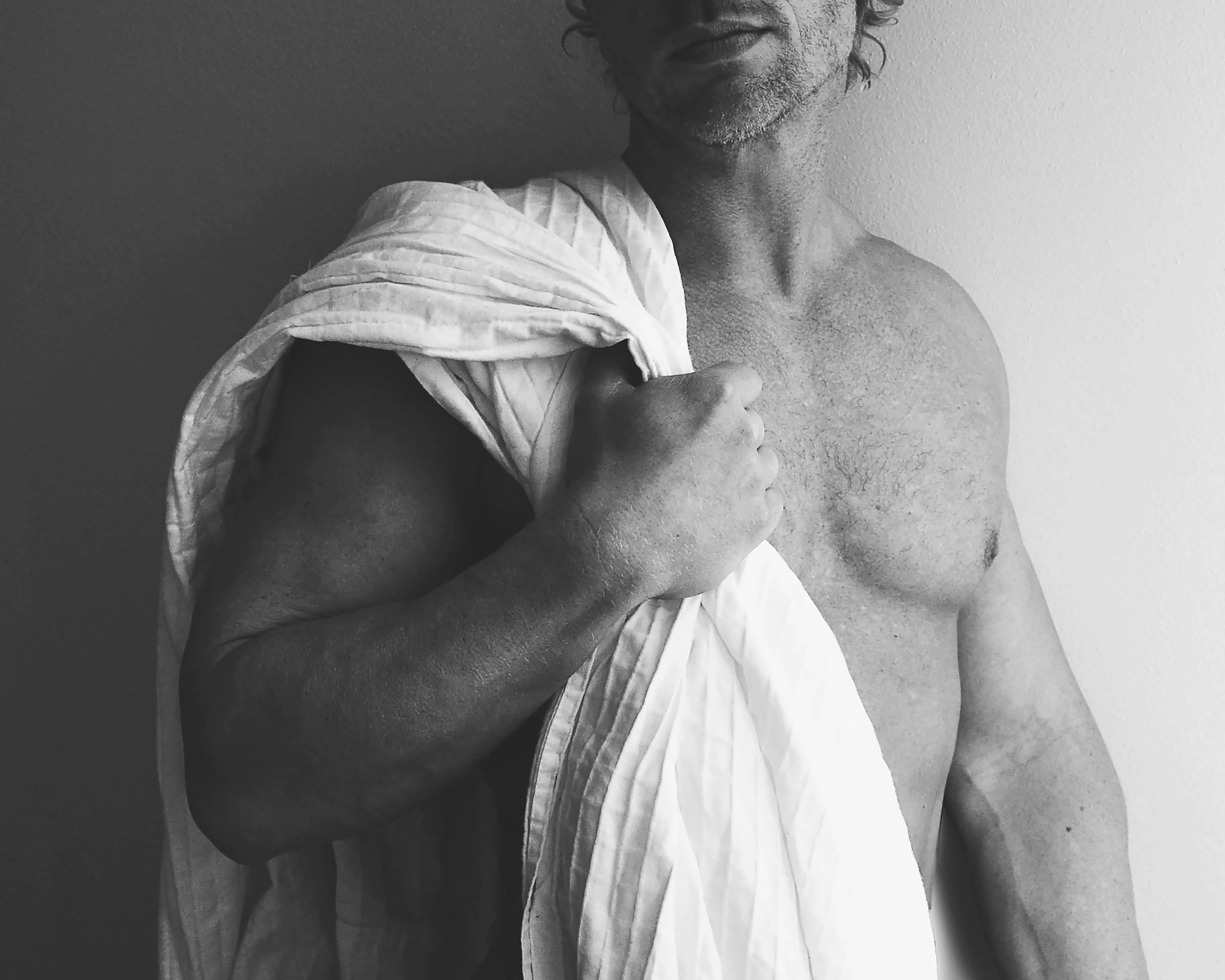 - Confidence wearing fitted shirts, swimwear, or going shirtless